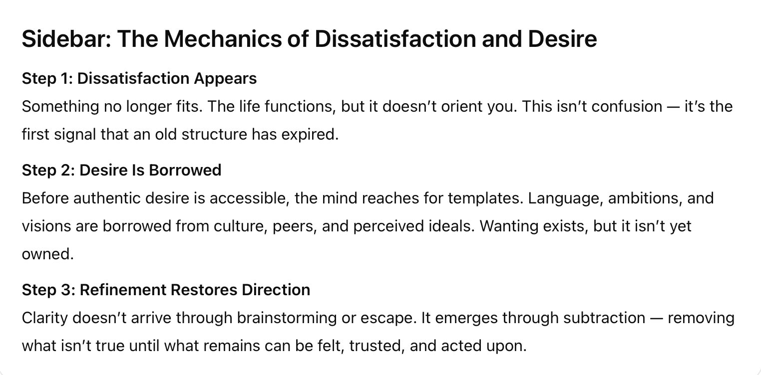 The life works. It functions. It looks fine from the outside. But internally, there’s friction — a sense of being slightly mis‑placed inside your own days.